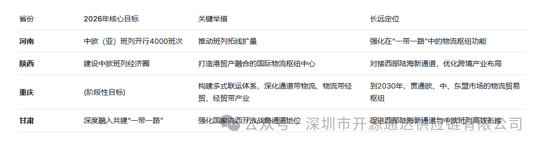 河南省聚焦中欧班列扩量,目标是2026年开行4000班次,巩固其作为亚欧大陆桥核心枢纽的地位。